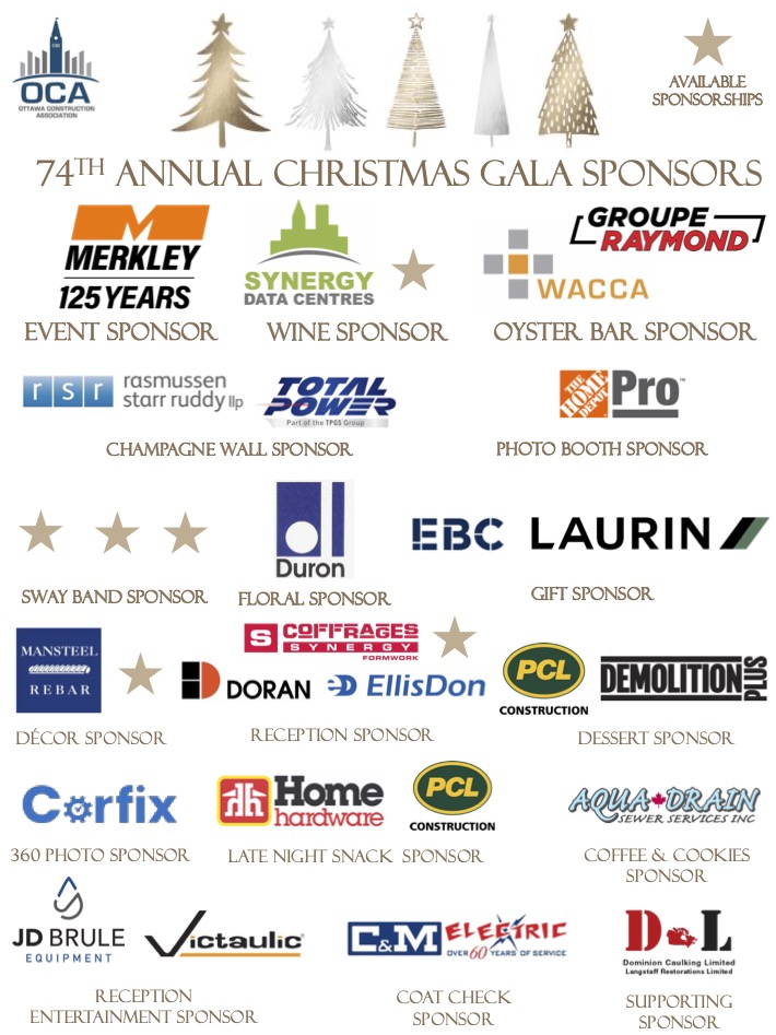 On Saturday, November 29, 2025, OCA Chair Ken Crawford and his wife Trish, invite all member firms to join them as the Ottawa Construction Association proudly presents its 74th Annual Christmas Gala, an evening of timeless sophistication held within the resplendent Ballroom of the Fairmont Château Laurier.